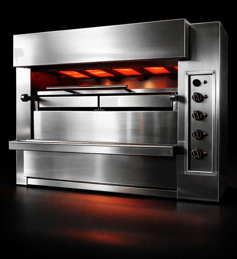 המתקן פועל בטכנולוגיית חום עליון (אינפרא אדום), ללא מקור חום תחתון – כך מתקבלת צלייה מדויקת, אחידה ונקייה, בלי להבות, בלי עשן מיותר ובלי הפתעות באמצע השירות.